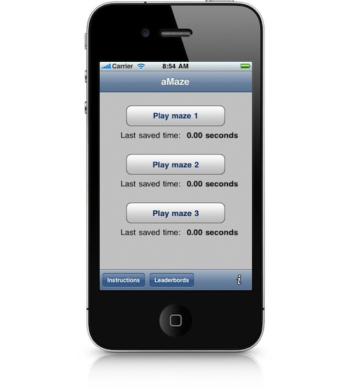 aMaze 2.0 challenges you to find the end of the maze before the time runs out by tilting and turning your iPhone/iPod Touch to navigate the ball.