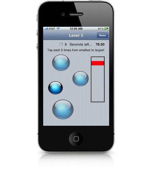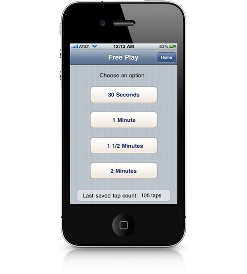 The objective: Tap the screen as many times as asked before the time runs out to proceed to the next levels. As the levels go on, the timer gets smaller and the required taps gets bigger, so make sure your fingers are well rested!